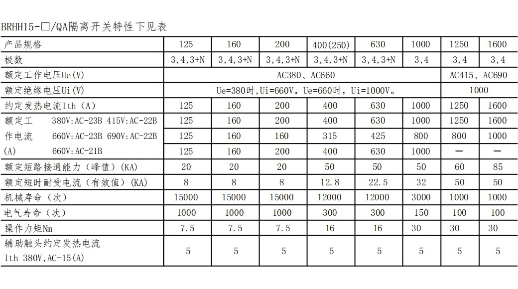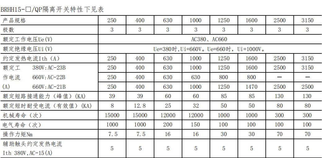 BRHH15系列隔離開(kāi)關(guān)熔斷器組,QA及QP系列隔離開(kāi)關(guān)(以下簡(jiǎn)稱開(kāi)關(guān)),開(kāi)關(guān)主要使用在具有高短路 電流的配電電路和電動(dòng)機(jī)電路中,作為手動(dòng)不頻繁操作的主開(kāi)關(guān)或總開(kāi)關(guān)。尤其適合于安裝在較高級(jí)的抽 屜式低壓成套裝置中。